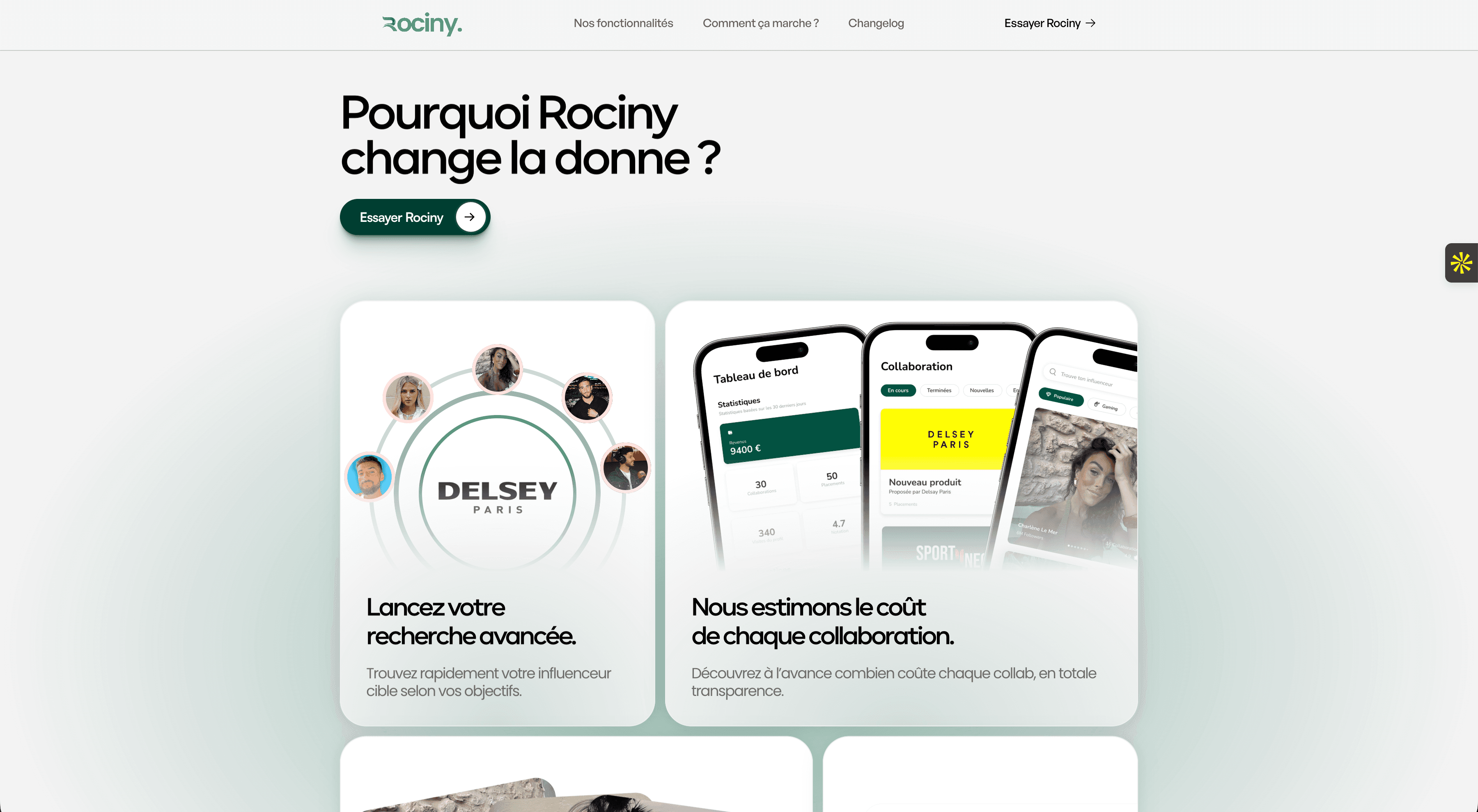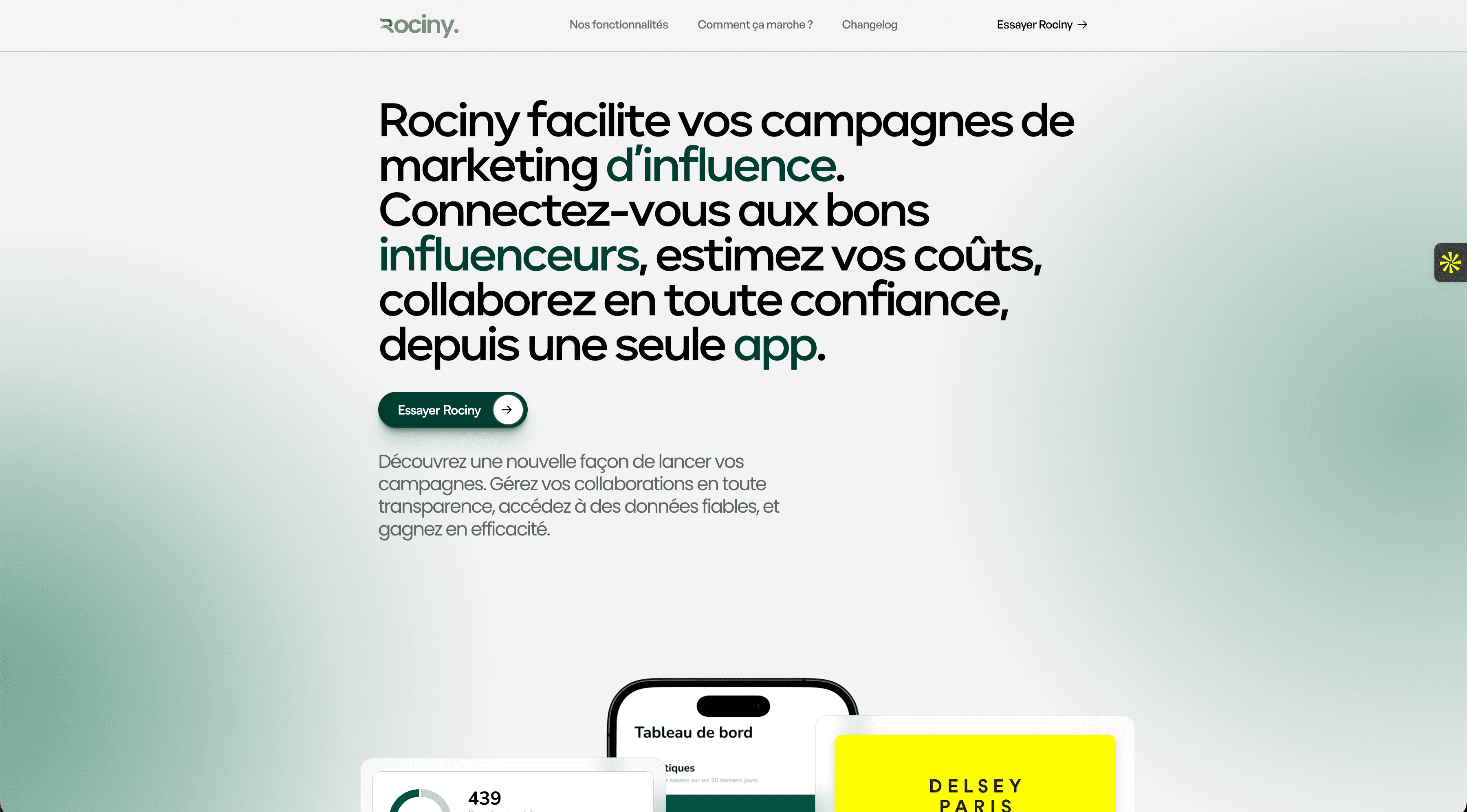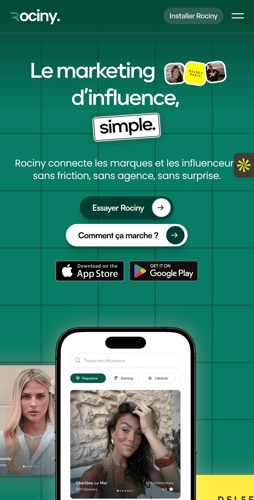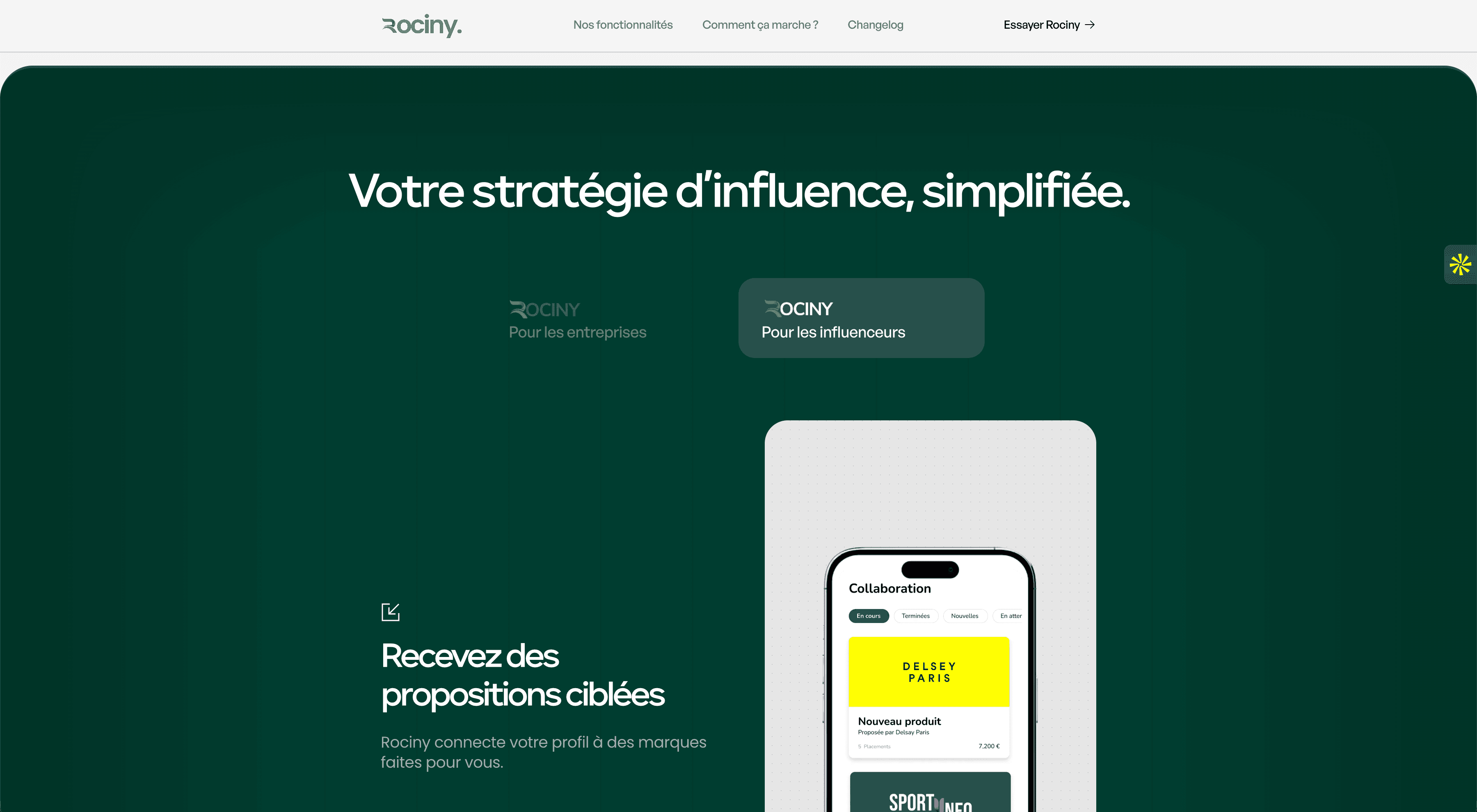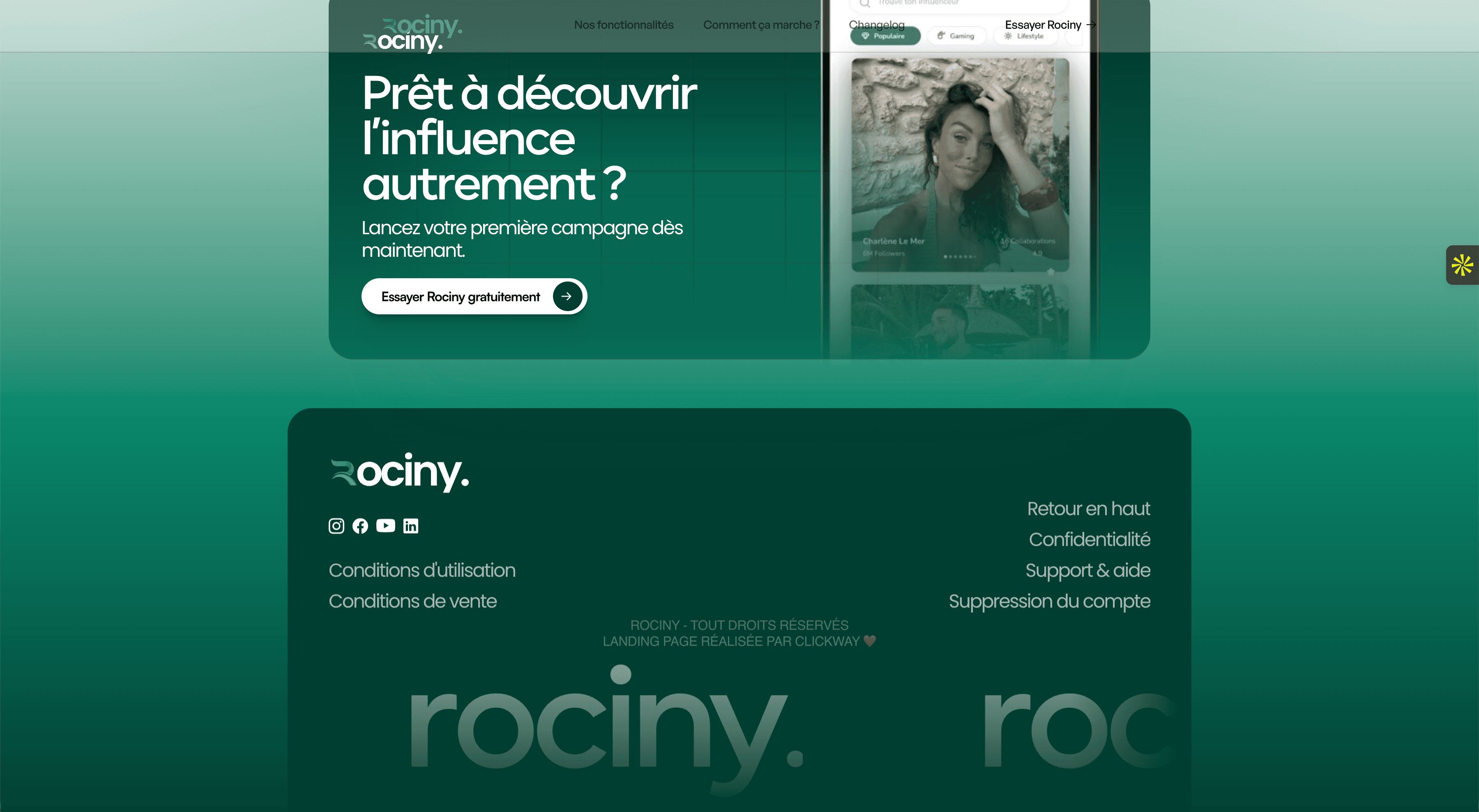 Rociny, une application de mise en relation entre marques et influenceurs, avait besoin d’une landing page capable d’expliquer clairement la valeur de l’app… en quelques secondes.